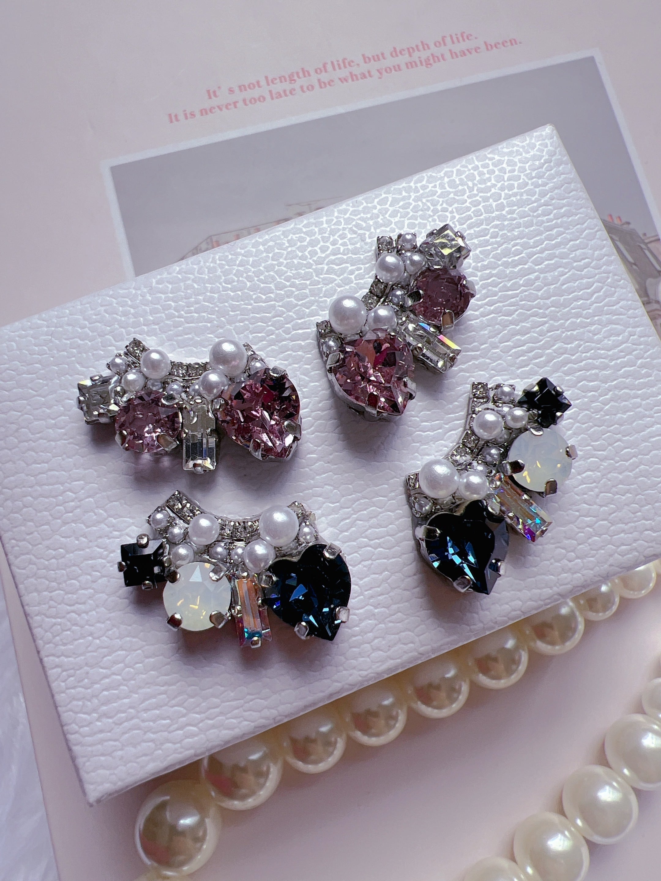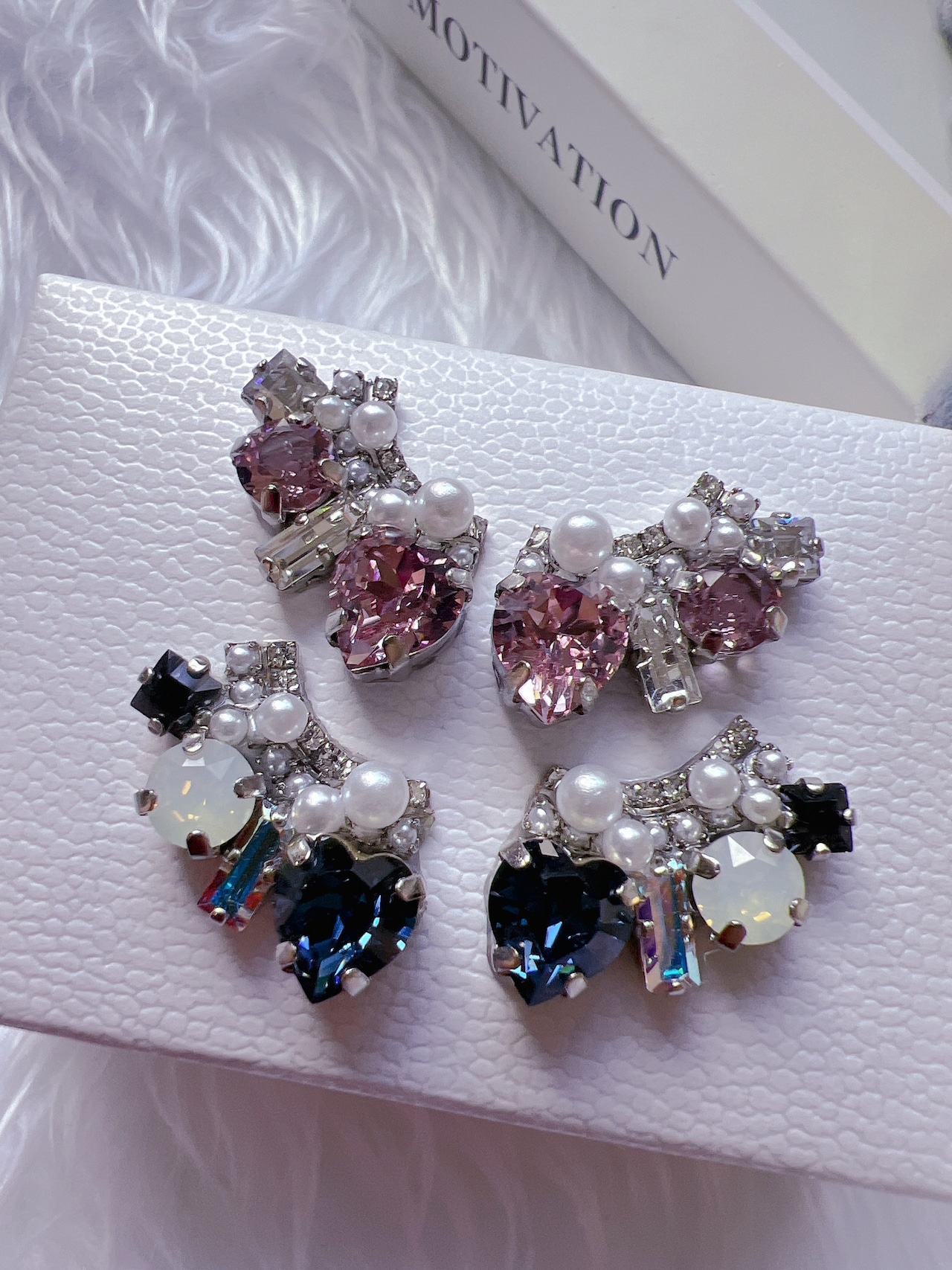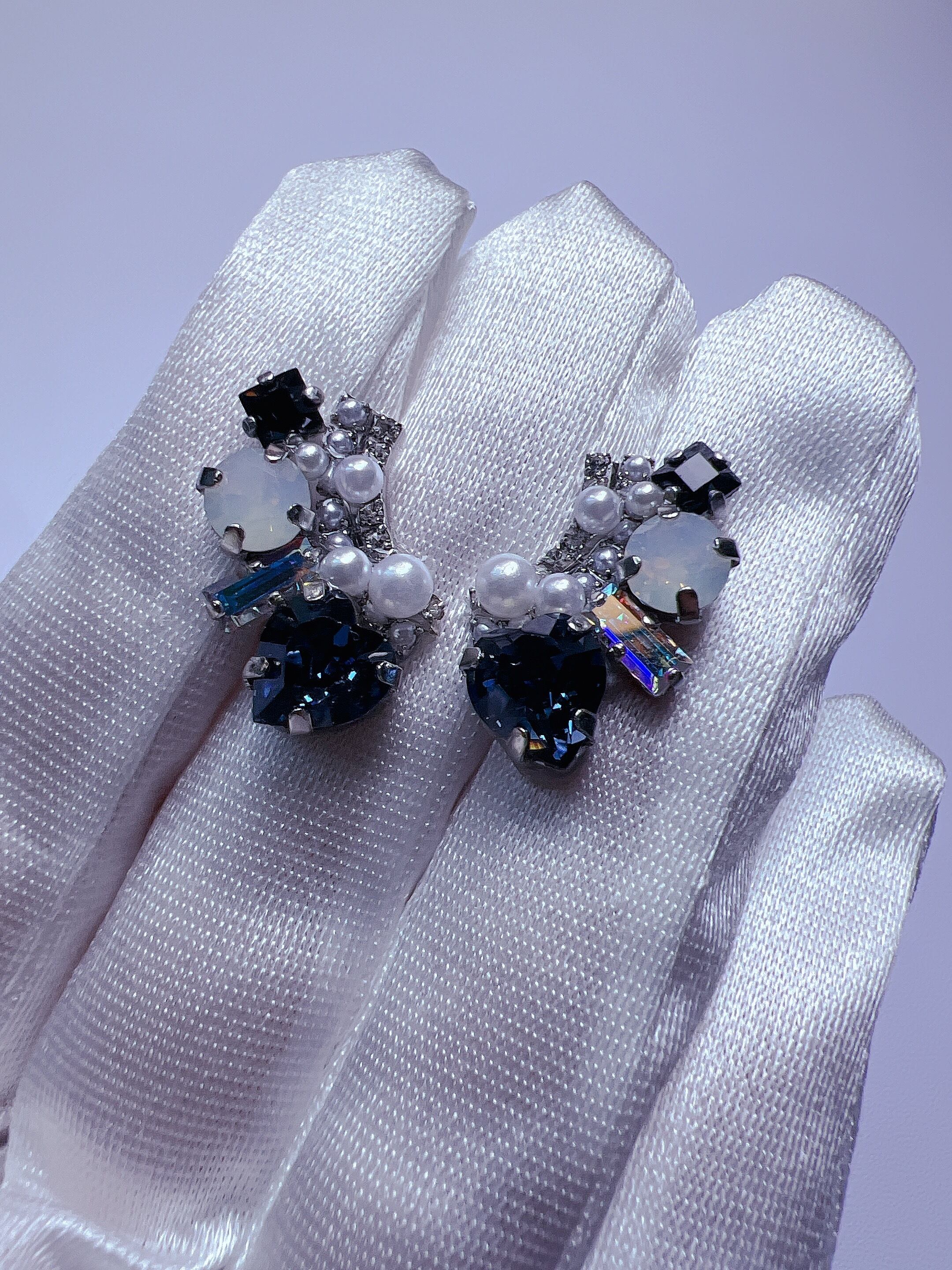 こちらは、ハートのクリスタルガラスをメインに組み合わせてデザインした耳飾りです。