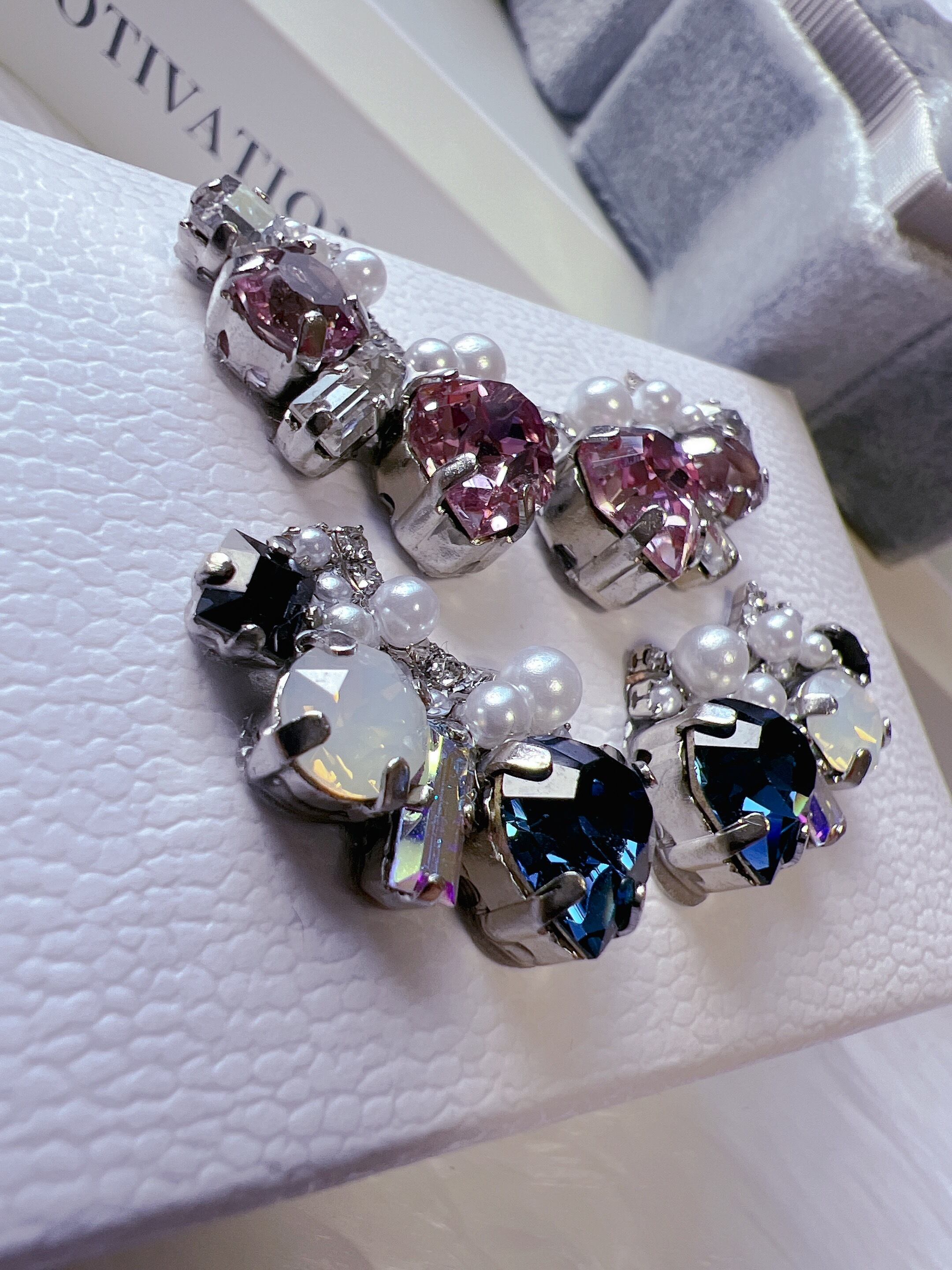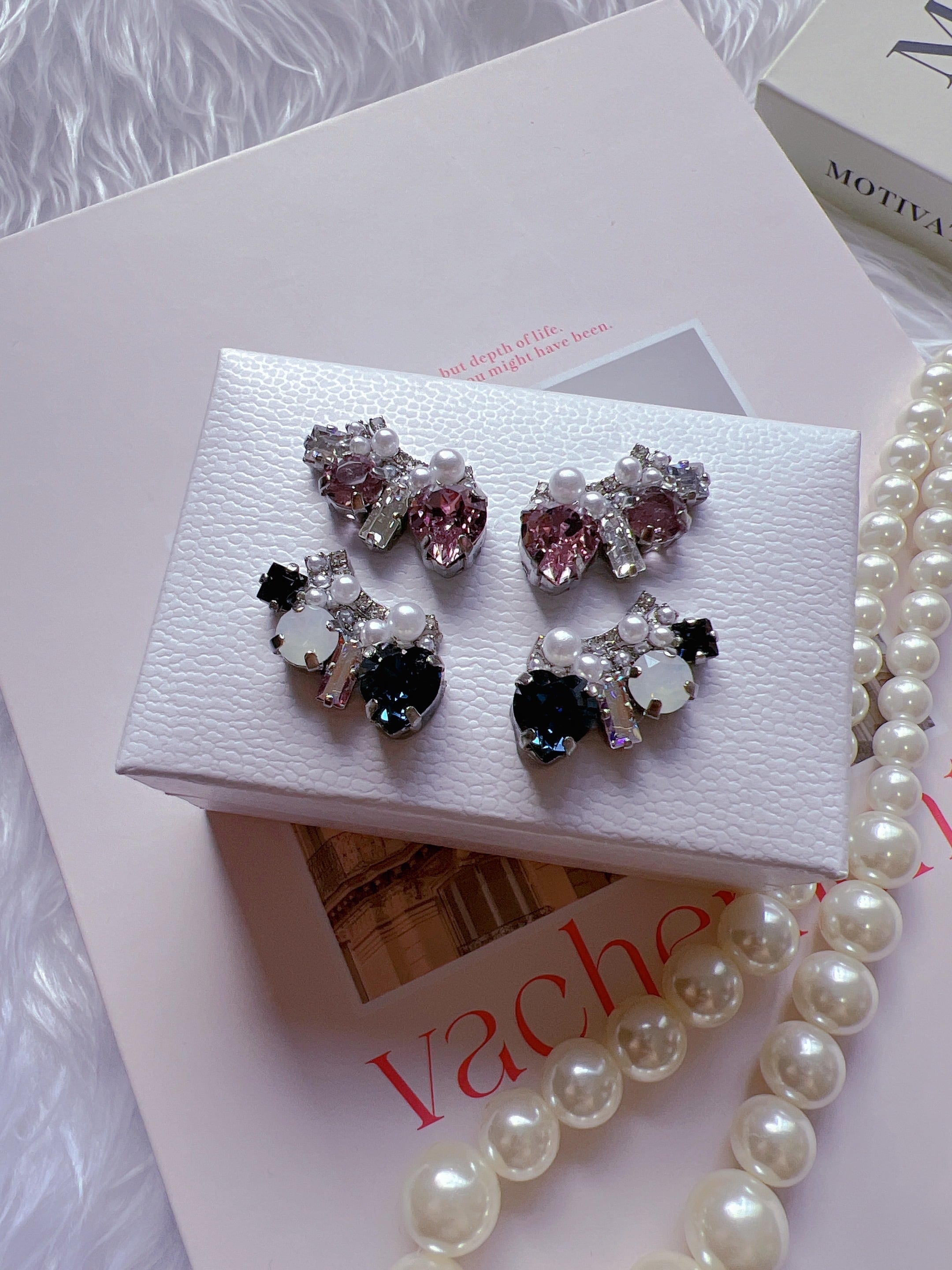 耳元で輝くクリスタルとパールの相性もバツグンです。